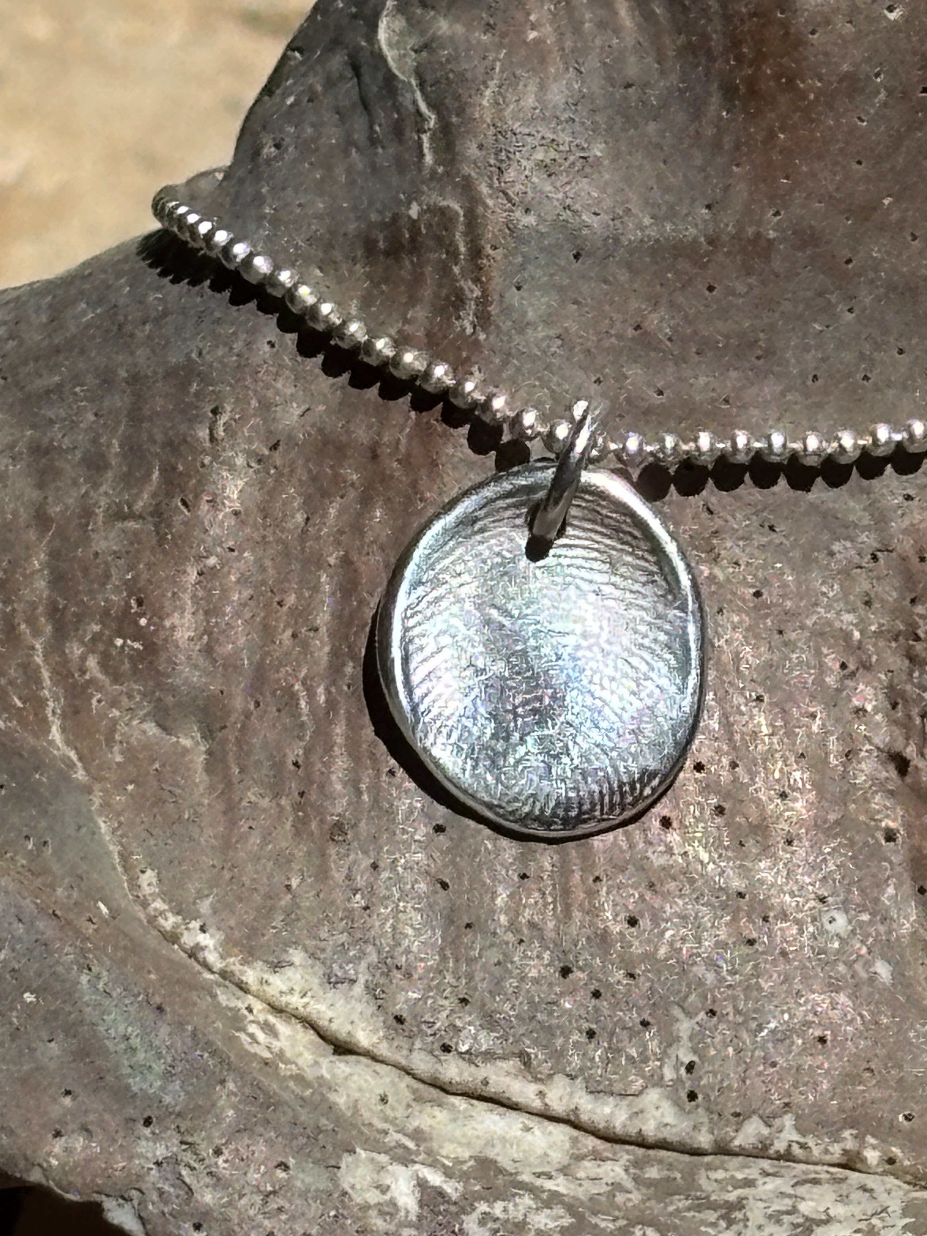 Stuur de afdruk terug, en wij maken er een uniek sieraad van in zilver.