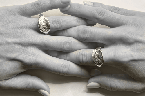 We houden van échte afdrukken geen laser, geen gravure, maar het echte reliëf van jouw vingerafdruk — precies zoals jij ’m hebt gemaakt. Elk sieraad vormen we met de hand in zilver, zodat alleen de pure afdruk overblijft. Puur, eerlijk en helemaal van jou.