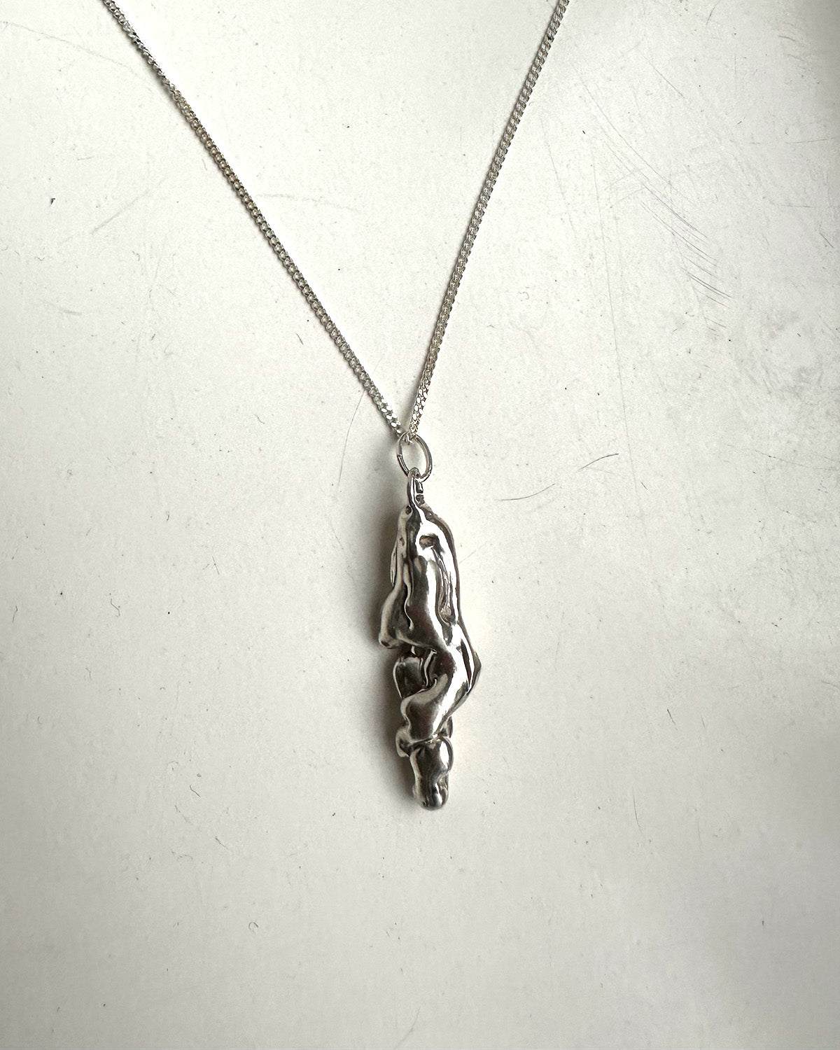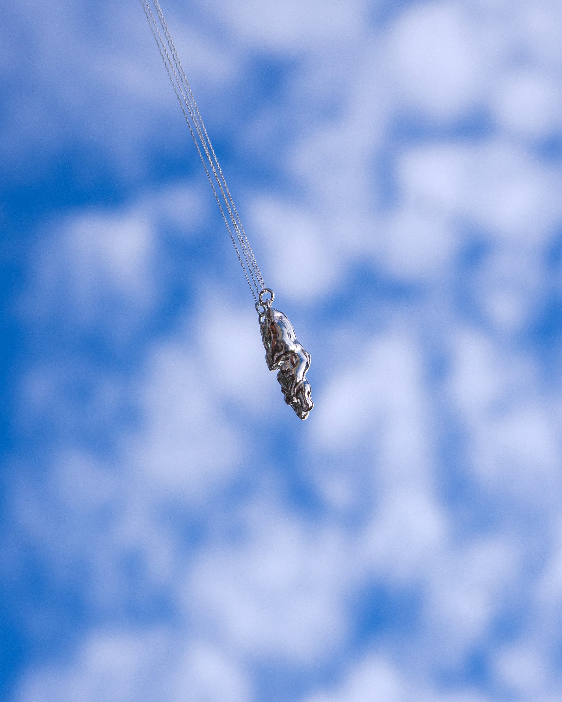 A luxurious addition to any jewelry collection, Cloud weighs a substantial 15 grams in 925 sterling silver. Its design is inspired by the soft, flowing shapes of large clouds. Originally handcrafted in wax and fire, this pendant is now cast in high-quality 925 sterling silver. Please note that the necklace is included in the price.
