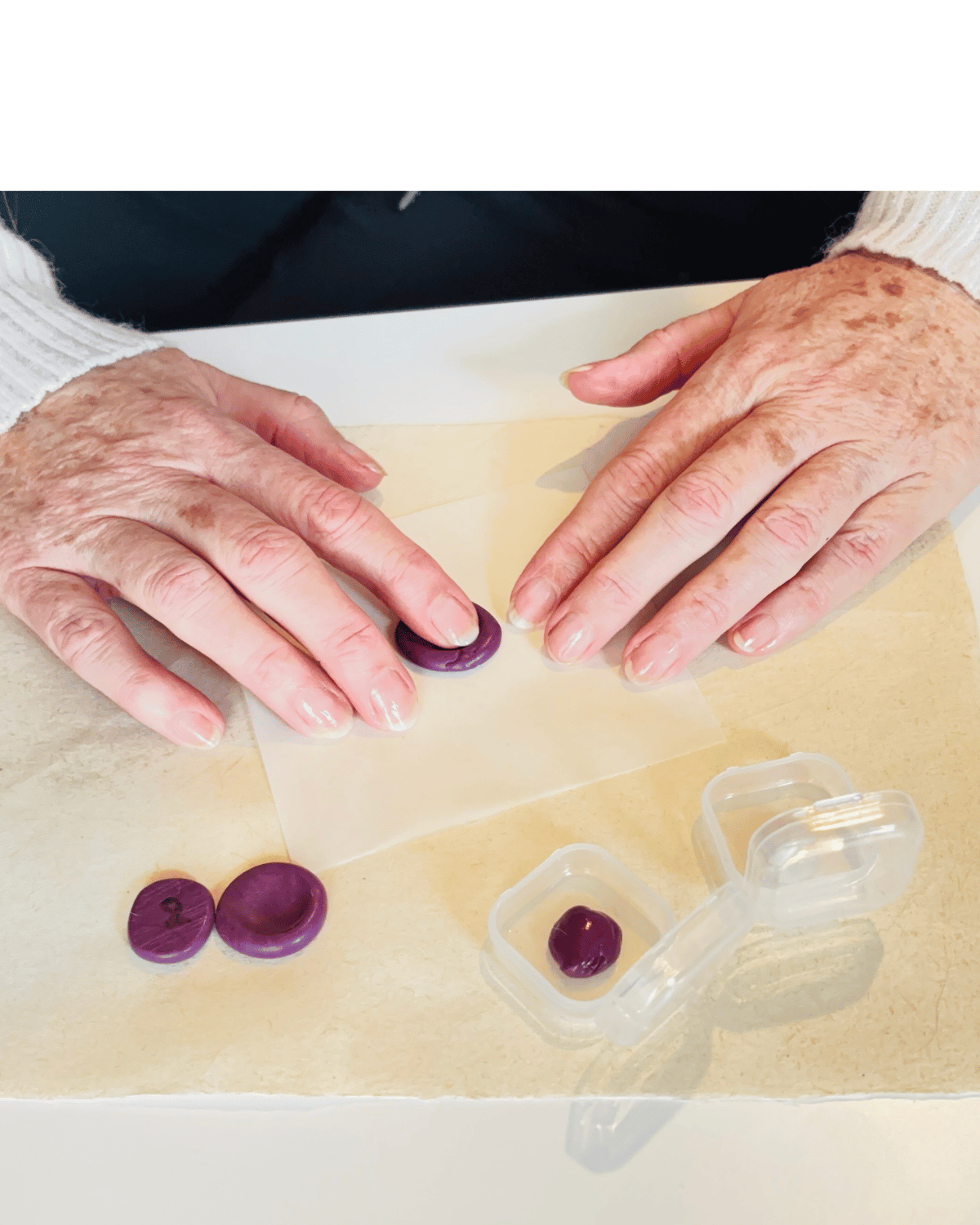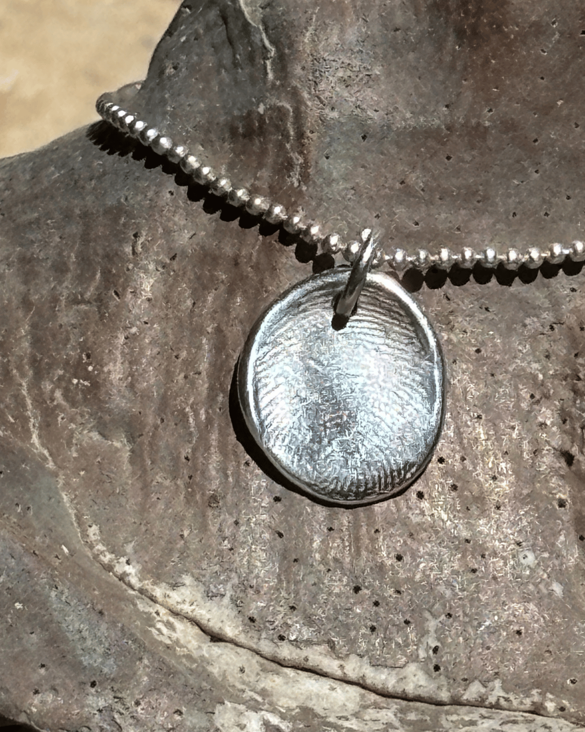 Op basis van jouw afdruk ontwerpen en maken wij het sieraad in zilver, precies in de vorm die jij kiest: rond, label of organisch.